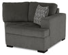 In a busy life, multipurpose furniture can make everyday occurrences so much easier. Whether hosting guests or a family movie night, this spacious Legend two-piece sectional can do it all in style. With a calm, contemporary design and a rich pewter colour, this sofa will add a sense of comfort to your home. Chenille fabric is soft, and the extra padding provides comfort and support. Plus, the cuddler component adds a unique flair while allowing you to curl up with a loved one. Get cozy and let comfort wash over you and your family with the Legend cuddler sectional.