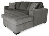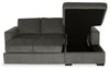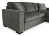 In a busy life, multipurpose furniture can make everyday occurrences so much easier. Whether for hiding clutter, having over night guests or hosting a family movie night, this spacious Legend two-piece sectional can do it all in style. With a calm, contemporary design and a rich pewter colour, the sofa will add a sense of comfort to your home. If a last-minute visitor needs to stay the night or an important guest is about to come by, you'll be prepared. Hide your disarray in the storage chaise, set up the built-in sleeper bed and be ready when you need to.