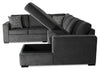 In a busy life, multipurpose furniture can make everyday occurrences so much easier. Whether for hiding clutter, having over night guests or hosting a family movie night, this spacious Legend four-piece sectional can do it all in style. With a calm, contemporary design and a rich pepper colour, this sofa will add a sense of comfort to your home. If a last-minute visitor needs to stay the night or an important guest is about to come by, you'll be prepared. Hide your disarray in the storage chaise, set up the built-in sleeper bed and be ready when you need to.