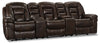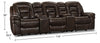 Create a warm and welcoming setting for your family with this plush, five-piece Leo power reclining home theatre sectional. Swathed in Leath-Aire upholstery, this revolutionary leather-look fabric adds a stylish look to your home while remaining breathable. Each cushion is filled with high-density foam to provide a cozy space to unwind. Meanwhile, multiple seats recline so you can choose where to stretch out at the end of a long day. Get comfortable on this Leo Leath-Aire home theatre sectional.