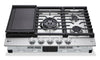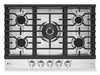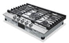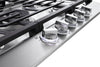 | Five Sealed Gas Burners: UltraHeat 22,000 BTU Dual Burner: Removable Cast-Iron Griddle: White LED Illuminated Knobs: Continuous Cast-Iron Grates: EasyClean Stainless Steel Cooktop: Auto-Reignition: Smart Capabilities: |