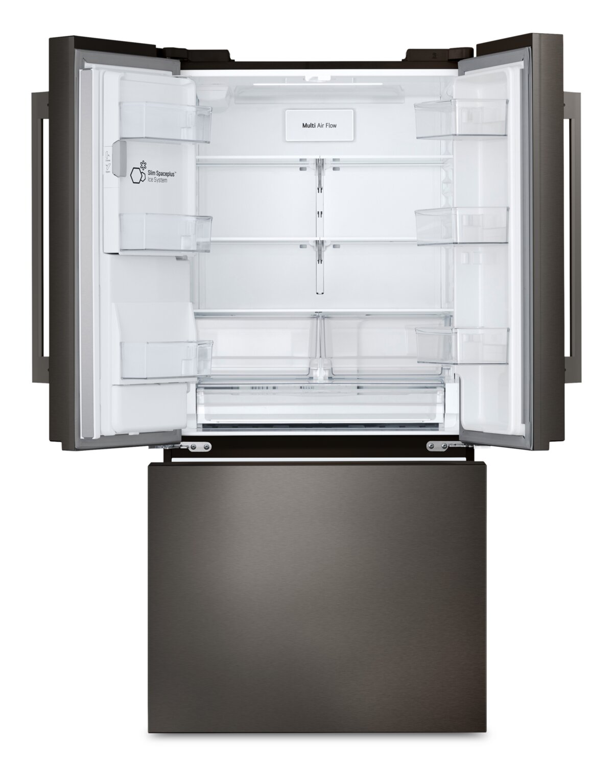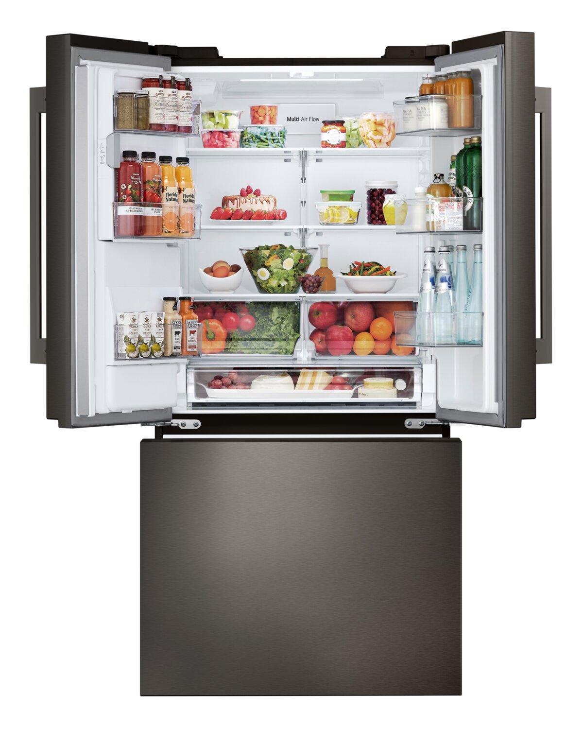 | External Ice and Water Dispenser: PrintProof Stainless Steel: Smart Technology: Spacious Three-Door Design: Adjustable Shelving: Linear Compressor: |
