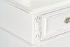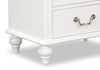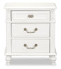 Show off your inner majesty with this Livy nightstand. This traditional curved design features turned feet and delightfully carved roses, all in a classic white finish. Each of the three spacious drawers is fronted by nickel pulls with crystal accents, perfect for adding some flair to your bedroom. A solid pine wood frame adds stability to keep your bedroom treasures tucked securely away. The Livy is a nightstand fit for royalty, and ready to add some serious sparkle to your regal bedroom.