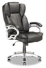 Work in comfort and style with this Lodwig deluxe office chair. Sitting doesn't need to cause you pain – adjust the chair using the tilting back support and gas lift. Swivel and roll your way around your office thanks to the moveable chair base. Plus, the cushioned back and seat offer a comfortable resting spot, while the black faux leather cover makes this chair an attractive addition to your home.
