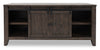 The Madison 60-inch TV stand is here to add some serious farmhouse style to your living room. Slide the double barn-style doors apart to reveal extra storage space and keep your DVDs tucked neatly out of sight but easily within reach. Integrated cord management keeps messy wires at bay, while the adjustable shelving makes fitting taller components or knick-knacks a breeze. With its handsome brown finish and exposed door rails, this country-chic TV console is a beautiful and trendy focal point to any living room.