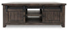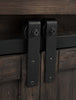 | Accent Details | This two-tone piece features barn- style doors that roll on exposed rails. |