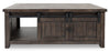 This Madison brown coffee table is here to add some serious farmhouse style to your living room. Slide the double barn-style doors apart to reveal extra storage space and keep your DVDs tucked neatly out of sight but easily within reach. Finished on the back as well as the front, this coffee table looks great from any angle and provides storage access from both sides. Balancing on hidden casters, this table is both sturdy and easy to move around – you’ll have no trouble vacuuming or reorganizing your room. Add this table to your home and enjoy the industrial vibe you’ve created.