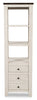 This Madison bookcase pier is here to add some serious farmhouse style to your home. Three tall open shelves are the perfect backdrop to display your cherished collectibles, while two drawers below are ready to hide the clutter you’d prefer to keep out of sight. Crafted from reclaimed pine wood, this bookcase is both durable and environmental-friendly. Painted in a soft off-white with a bold dark-stained wooden top, this bookcase mixes finishes to bring that rustic and refined feeling home.
