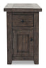 This Madison chairside table is here to add some serious farmhouse style to your home. One full-size drawer is perfect for storing books or remote controls, while a spacious cubby below keeps items hidden from sight behind a framed door. The two-tone style easily matches a variety of wood stains, while the slim design makes it a versatile accent piece for any room. You’ll be right on trend with this sturdy, reclaimed pine chairside table.