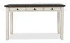 Enjoy relaxed sophistication at your workspace with this Madison County office desk. With a vintage white and barnwood brown finish, tasteful distressing and antique brass hardware, this piece gives off a well-loved vibe and will fit in beautifully with a rustic aesthetic. Plus, it features three desk drawers for organizing your office supplies, as well as a power unit with standard and USB ports. Work comfortably on its large desktop and bring the trendy farmhouse chic style into your workspace.