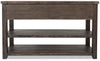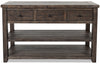Boasting a stylish reclaimed wood look blended with old fashioned charm, this Madison sofa table is here to bring a hefty dose of rustic style to your home. Three deep drawers provide a place for mail, keys or serving accoutrements. Below the drawers, two large shelves lend extra space for books, speakers or home decor pieces. The sturdy reclaimed pine wood is lightly distressed for a chic, industrial vibe and is finished on all sides, so it looks good from any angle. Place this sofa table under a mirror or your favourite wall art for extra visual impact.
