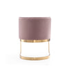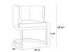 A study in balance. This dining chair is all understated luxury. Featuring a floating frame design with a delicately curved backrest, its unique modern style creates an undeniable sense of lightness. Plush velvet upholstery tailored into a sleek seat rests easily on a polished metal base, enhancing its effortless feel. Its chic polished brass finish lends a subtly sumptuous touch that will elevate the atmosphere in any dining space. To complete the look, coordinate with the Aura Bar Stool.