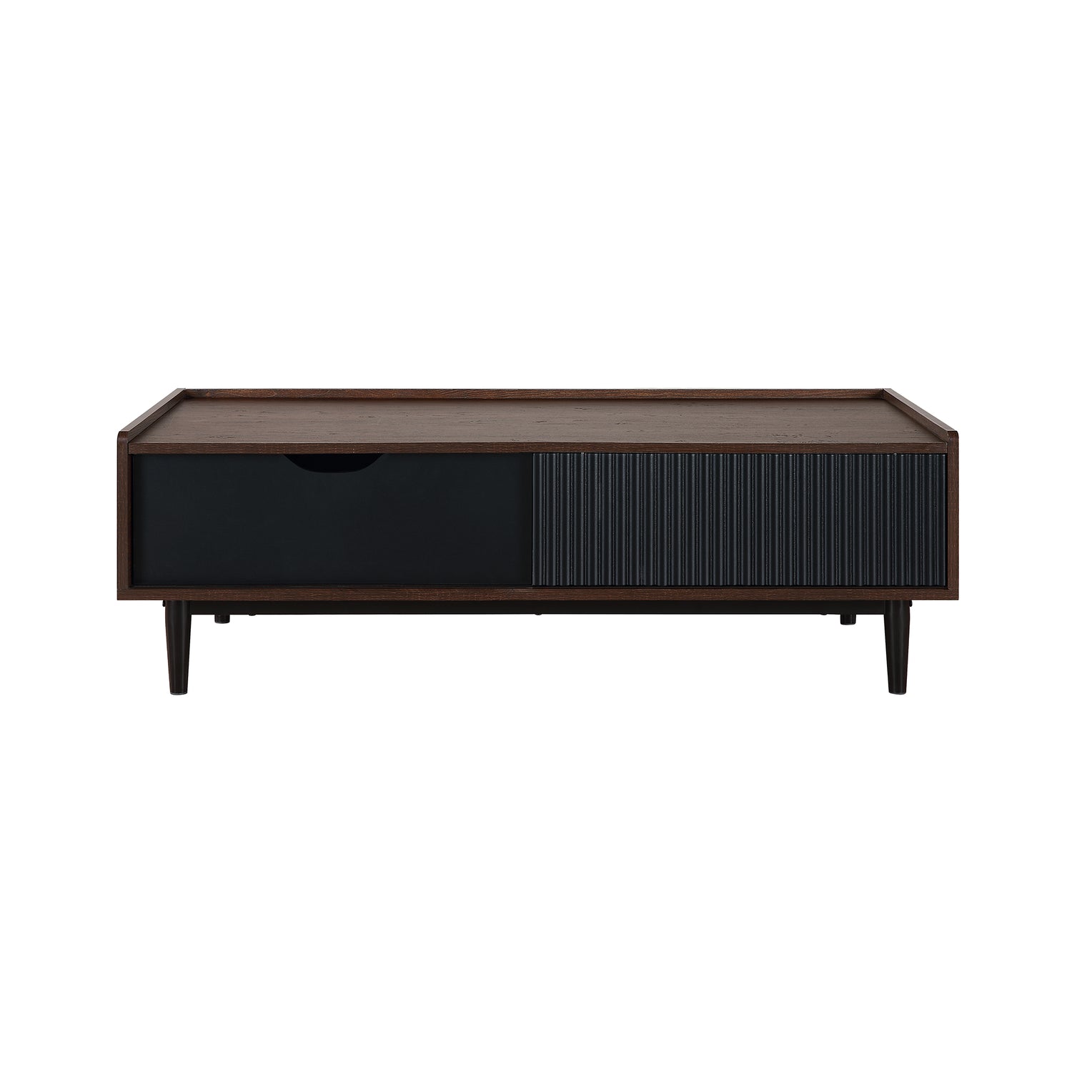 Manhattan Comfort Duane Modern Ribbed Coffee Table with Drawer & Shelf - Dark Brown & Black
