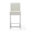 Carefully calibrated. Ultra-fresh and contemporary, the Element Counter Stool boasts of perfection. All polished chrome and textured sheen Faux Leather, it's precise angles and open geometric frame are utterly modern and chic. The overall effect expresses a powerful sense of balance that will revitalize the look of any dining space. Also available in bar height.