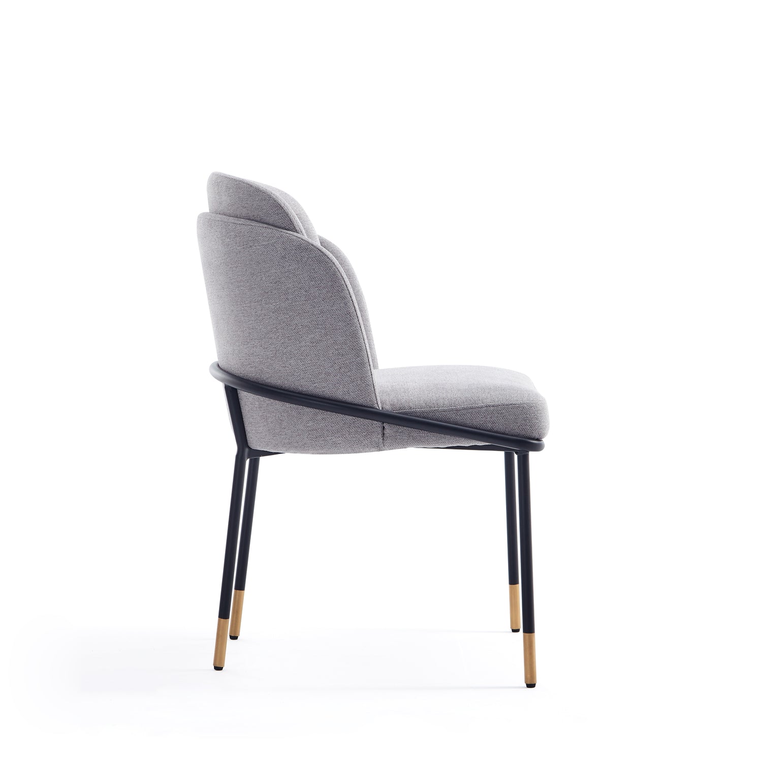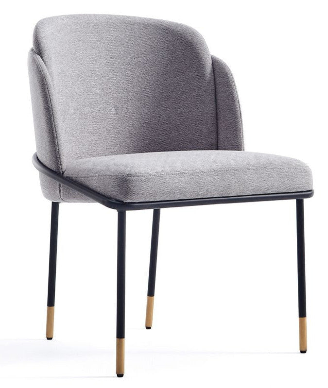 The dining room is a space to entertain. Not only do you want your dining furniture to look amazing, you want it to be a comfortable space for your family, friends, or your guests to enjoy. The Flor dining chair combines style, function, and comfort. A beautiful soft fabric upholstery covers a high density foam seat and back. The wide winged back offers ergonomic support for those long tableside conversations. Sleek metal legs complete the chair's skillfully crafted construction. The modern Flor dining chair is offered in Gray, Wheat, and Black upholstery to fit any styled kitchen or dining space.