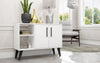Become the entertainer you always wanted to be with the Amsterdam sideboard. With open shelving perfect for wine glasses, dishes, books, and favorite travel trinkets, and ample display space for platters and snacks, this sideboard is functional and will always remain a mainstay for your dining or living space. Two doors conceal a pair of shelves that work well for storing dinner party essentials and tucking away items when the event is over. Splayed legs and long handles keep this piece modern and sophisticated, and blending easily with any existing decor.