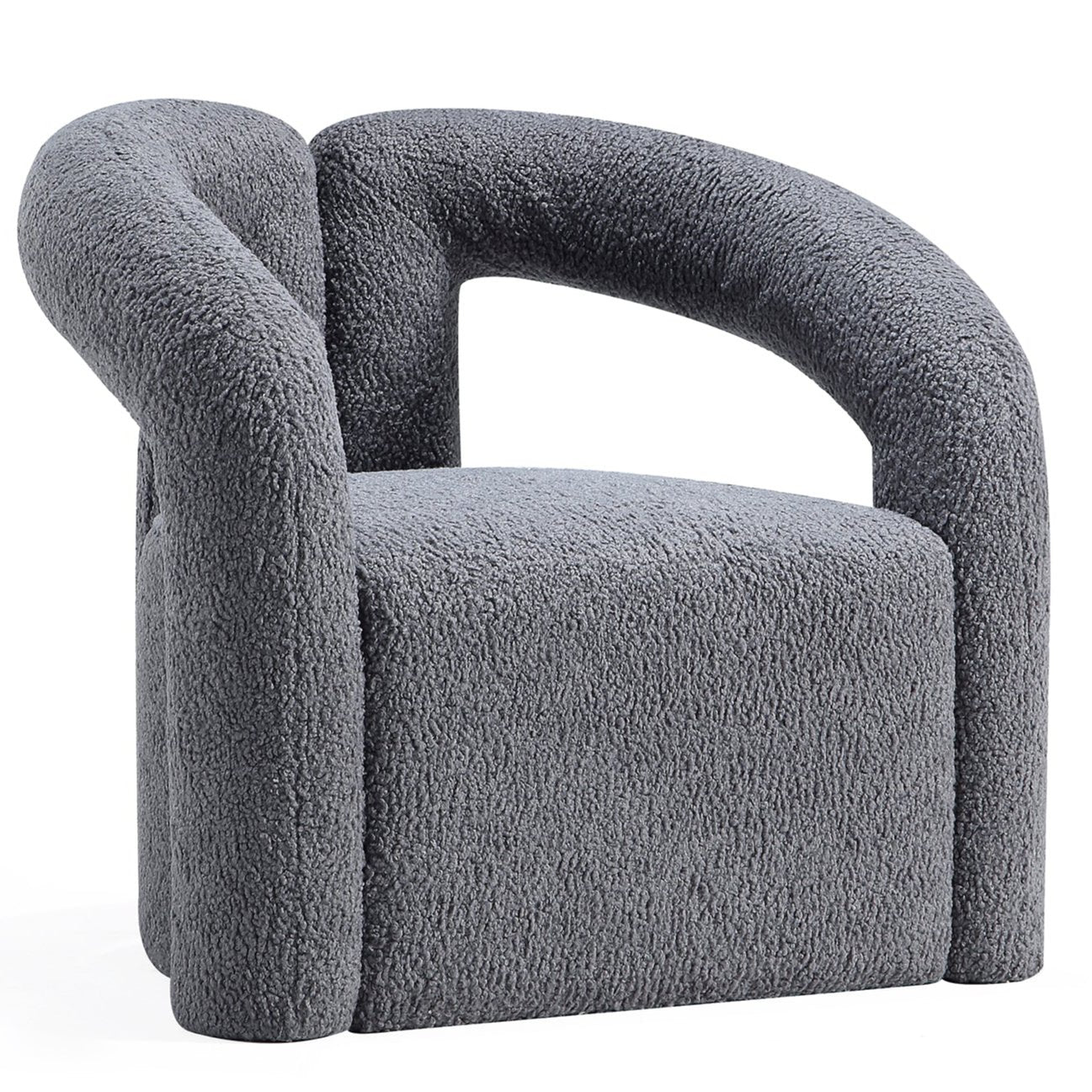 Elevate your living room with our exquisite Modern Darian Accent Chair, meticulously crafted for both style and comfort. Designed for durability, it features a high-quality pine wood frame. Upholstered in luxurious Boucle and complemented by high-density foam padding, it offers a plush seating experience. This chair boasts a modern open 'T' back design with rounded finishing, adding a contemporary touch to your space. With inner seat dimensions tailored for comfort, it's the perfect spot to relax and unwind. Tested for commercial-grade durability and with a weight capacity of 440 lbs, it seamlessly combines elegance with strength. Plus, it's delivered fully assembled, making it a hassle-free addition to your living space.