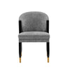 Elevate your dining room or workspace with our exquisite Modern Ola Dining Chair. Crafted from high-quality Elm Wood with chic brushed gold accents, it exudes both fashion and durability. Luxuriously upholstered in Chenille and featuring unique modern back legs that extend to the top back frame, this chair is as stylish as it is functional. Plus, it arrives fully assembled, ready to grace your space with its elegance and comfort.