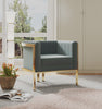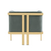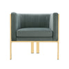 Lounge in 1920s luxury. This sophisticated accent chair is a modern, assertive take on the classic Art Deco style. An open architectural frame in polished brass wraps around the plush velvet seat, creating an inviting combination of simplicity and luxury. The seat’s backrest is accented with vertical stitching to complement it's geometric frame. The symmetrical, streamlined look will add an evocative touch of distinguished ‘20s glamour to any space.