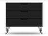 The Rockefeller dresser is the perfect accompaniment to any bedroom space, with ample storage and minimalistic Mid-century modern style. Cutout handles keep the piece feeling fresh with three drawers made easy for stowing away clothing, personal items, and beyond. A display top allows for sharing favorite framed family photos, travel trinkets, perfume trays, or a decorative lamp. Set it under a mirror or painting to complete your space with this instant bedroom focal point.