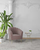 Utterly captivating. Elegance meets coziness in this exquisite accent chair. With a wraparound back, deep vertical channeling, and extra-plush padding, the shell-style seat surrounds you in comfort. Sumptuous velvet upholstery is soft to the touch with lustrous depth and show-stopping color. Set on angled stainless steel legs with gold tone finish, this chair gives style a whole new meaning.