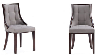 Manhattan Comfort Set of 2 Fifth Avenue Faux Leather Dining Chairs - Grey & Walnut