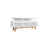 Instantly up your living room design game with the Yonkers TV stand that allows you to host the ultimate movie night, while storing and displaying favorite items, such as albums, magazines, books, and more. Open and concealed storage allows you to tuck away extras and keep remotes or media accessories close by. Beautifully crafted, this mid-century piece works well with any existing interior design and perfectly centers the living room area where friends and family will gather and share memories.