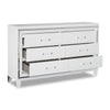 Designed to help your bedroom reach its full sparkling potential, this Max dresser's unique details combine to create a stylish and functional addition to your lifestyle. Bevelled mirror trim around the outer edge lends a dramatic enhancement while transparent acrylic handles add the perfect touch of glamorous gloss. Six deep drawers lend plenty of space for clothes plus two hidden drawers inside provide a designated space for jewellery. Enjoy the glitzy presentation this Max dresser brings to your room.