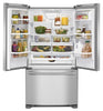 Keep all of your groceries properly stored and neatly organized in this Maytag French-door refrigerator. The specialized Wide-N-Fresh™ deli drawer helps preserve the freshness of deli meats and cheeses. Plus, you can simply touch a button to initiate the PowerCold™ feature and rapidly reduce the temperature inside to chill newly-unpacked groceries fast.