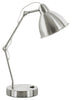 Bring style and functionality to your space with this industrial-inspired modern 17" h table lamp. Made with a nickel metal finish, this task lamp features an adjustment arm with various joints for greater flexibility, allowing you to direct the lighting to the task at hand. Fitted on a solid round metal base, this lamp has a USB port included to conveniently charge your device and an off/on rocker switch to easily brighten an office, living room, or bedroom area. Using a 40W/120 V bulb (not included) and attached with a 6ft transparent cord, place this decorative task lamp on any desk, end or side table, or on your nightstand to light up reading material or detail work. Using high-quality materials, this adjustable table lamp includes a 2-year warranty against manufacturer's defects for your satisfaction.
