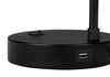 Whether you need a decorative task lamp to brighten up your work area, a nightstand or a bedside table this trendy and stylish 19"h modern table lamp with the USB port included is the perfect choice! Great for brightening up any office, living room, or bedroom, this contemporary accent lighting sits on a sleek, black metal body with a slender arm and is toped with an ivory fabric shade giving off a soft glow. This practical lamp is attached with a 6ft black cord, a convenient built-in on/off rocker switch and a USB port at the base to recharge your device, and housing a single bulb (not included) for a maximum light output of 60W/120V. Made with durable quality materials ensuring longevity, this lamp includes a 2-year limited warranty against any manufacturer's defects for a worry-free purchase.