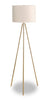 Illuminate your space with the perfect combination of classic style and contemporary flair with this 63"h floor lamp! The simple tripod design keeps the lamp stable while the brass metal base and ivory linen drum shade ensure a timeless, elegant look. The 3-way switch holds a single bulb (not included) for a maximum output of 100W/120V, allowing you to adjust the amount of light needed to create an intimate atmosphere or brighten up a dark room. With a 6ft clear cord discreetly attached to one of the legs at the bottom, place this versatile lamp next to a sofa or armchair in a living room or office, or bring it into your bedroom for a practical lighting option. Made with durable quality materials ensuring longevity, this lamp includes a 2-year limited warranty against any manufacturer's defects for a worry-free purchase.