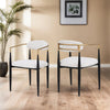 Bring a touch of elegance to your dining space with the madison dining chair set. This set of two armchairs showcases soft white boucle upholstery paired with sleek gold-trimmed iron frames for a luxurious, modern look. The sculpted round silhouette and curved open-back design offer a refined profile, while plush foam cushions ensure lasting comfort. Ideal for contemporary dining areas, breakfast nooks, or as stylish accent chairs in any room. Some assembly is required, and all necessary tools and instructions are included for quick and easy setup.
