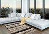 Neutral tones of brown, grey, beige, black and cream form a modern and abstract striped design. This rug is a piece of artwork for your floor.