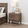 The Prepac Milo 2-Drawer Nightstand is a modern take on a retro look, with a sleek mid-century modern design that adds a touch of vintage styling to your bedroom. Two full sized drawers provide ample room for all your bedside necessities, keeping the area around your bed organized. The tapered solid wood legs and inset drawers deliver a clean and modern look to your bedroom. Brushed brass finished knobs add to the retro-chic design of this functional and fashionable nightstand. Style this nightstand on its own, or combine it with any of the products in the Milo collection for a timeless look.
