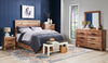 Welcome to your own personal bedroom oasis with the Mojave king six-piece bedroom package. Reclaimed wood-styled planks are finished in both light and dark shades of brown to add a stylishly weathered touch to your bedroom. A tall panel headboard gives you a comfortable spot to lean back, relax and watch just one more episode before bed. Deep drawers with sturdy metal drawer pulls are ready to hold your clothing, blankets or other bedroom essentials. Sink into the Mojave bed tonight and let the worries of the world drift away.