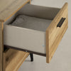This fabulous nightstand will be both stylish and useful next to your bed. Its sleek lines as well as its thin metal handles and legs give it an urban modern look that will add a sophisticated touch to your decor. Install a pretty vintage lamp on top of it to create a soothing atmosphere to read a good book before falling asleep. Its two drawers and its surface are at an accessible height. You will enjoy being able to reach out to your bedtime essentials without having to slip out from under the covers. And that’s not all, its all-around finish will allow you to move it around as you please.