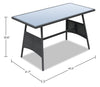 | Material | Steel, Resin Wicker, Glass Steel is an inherently strong yet flexible material used to construct machinery, buildings and furniture frames. Also known as all-weather wicker, this resilient material is made with synthetic fibres. Resin rattan will repel the elements, and resists UV radiation, humidity and water. Glass is sturdy and can support a lot of weight, yet has a light, thin design for an elegant finish. |