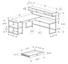 | Storage Options | Two fixed shelves, one storage drawer and a hutch with three cubbies. |