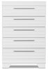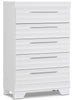 Add a splash of contemporary flair to your home with this Olivia chest. Understated details include carefully scalloped hollows and sleek pewter handles, which adds elegance to your bedroom. High-quality engineered wood is finished with laminated wood grain for a sleek look. With a striking design, this Olivia bedroom piece will make every day a bright, enjoyable experience.