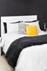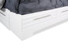 Add a splash of contemporary flair and a burst of fresh style to your home with this Olivia storage bed. Understated details including carefully scalloped ribbing and sleek pewter handles bring modern sophistication to your space, complementing affordability with elegance. Rest at ease knowing this Olivia package will bring you long-lasting storage thanks to high-quality engineered wood drawers within the bed side.