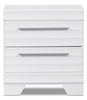 Add a splash of contemporary flair to your home with this Olivia nightstand. Understated details include carefully scalloped hollows and sleek pewter handles, which adds elegance to your bedroom. High-quality engineered wood is finished with laminated wood grain for a sleek look. With a striking design, this Olivia bedroom piece will make every day a bright, enjoyable experience.