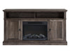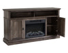 Create an inviting, entertaining space in your living room with this Ollie TV stand and built-in electric fireplace. Crafted with a composite wood construction in a grey reclaimed pine finish, this TV stand casts a cozy and traditional look. Two wide cubby spaces help protect your media consoles while adjustable shelves in the cabinets make room for all your entertainment accessories. When it’s time to get cozy, turn on the 23-inch electric fireplace with log setting insert that's great for heating small spaces. Turn up your comfort level with this attractive TV stand and fireplace.