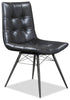 Add some industrial cool to your dining space with the Avis dining chair. Square patterned, black faux leather is decorated with button tufting on both the seat and back. Pointed metal legs radiate out from the seat to keep you sitting securely in style. Settle into the Avis, and embrace the dark side of dinner time.
