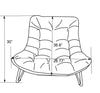 | Accent Details | The tufted light grey cushion pairs well with the rattan seat and metal, open frame legs. |