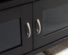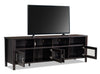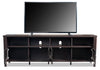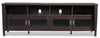 Put your big screen television on proper display with this stately Palmer TV stand. With this stand's dark colour and generous storage space you can create a sharp and tidy entertainment space in your home. The dark reddish-brown woodgrain looks dignified and coordinates easily with most home decor colour palettes. Four media cubbies help protect your entertainment consoles, while four large cabinets underneath provide ample space for magazines, controllers and other home essentials. Don't forget to pick up popcorn because movie night is ready to go.
