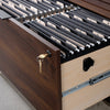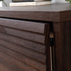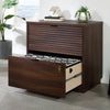 This Palo Alto filing cabinet has an ideal amount of storage space, with the bonus of being stylish, too. Catching the eye with vertical woodgrain and horizontal slatting, this piece has a heat-, stain- and scratch-resistant top, with impact-resistant, high-grade thermoplastic edges, to make sturdy room for a printer, lamp, books, plants and more. Two drawers hold letter or legal-size hanging files, with the addition of having an interlocking safety mechanism and a key lock. With a dark brown finish, this cabinet is a grand addition to your office space.