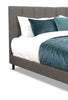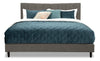 Modernize your sleeping space with the coolness and comfort of this Paseo platform bed. Since the bedframe doesn't require a boxspring, you can keep a slim, low-profile look that exudes contemporary style. Building on that look is the vertical accent stitching along the dipping headboard. The subtlety of each detail is sure to make your other bedroom accents really pop. Finally, you'll lavish in the lush fabric upholstery that wraps around the entire exterior of this bed. Softness, style and shuteye – an ideal combination.
