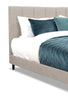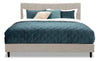 Modernize your sleeping space with the coolness and comfort of this Paseo platform bed. Since the bedframe doesn't require a boxspring, you can keep a slim, low-profile look that exudes contemporary style. Building on that look is the vertical accent stitching along the dipping headboard. The subtlety of each detail is sure to make your other bedroom accents really pop. Finally, you'll lavish in the lush fabric upholstery that wraps around the entire exterior of this bed. Softness, style and shuteye – an ideal combination.