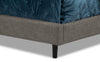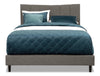 Modernize your sleeping space with the coolness and comfort of this Paseo platform bed. Since the bedframe doesn't require a boxspring, you can keep a slim, low-profile look that exudes contemporary style. Building on that look is the vertical accent stitching along the dipping headboard. The subtlety of each detail is sure to make your other bedroom accents really pop. Finally, you'll lavish in the lush fabric upholstery that wraps around the entire exterior of this bed. Softness, style and shuteye – an ideal combination.